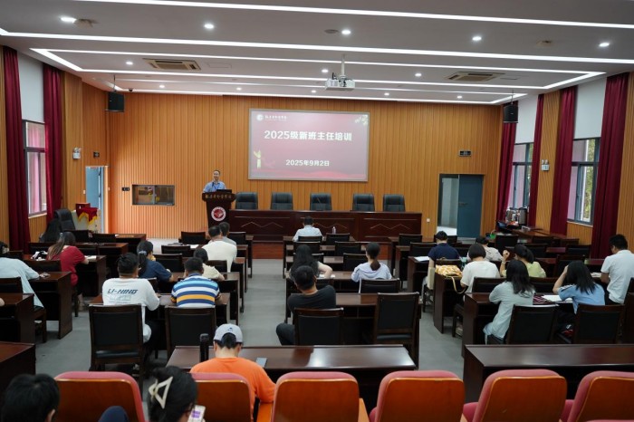 为进一步加强新任班主任队伍建设,提升新教师的班级管理能力和育人水平,9月2日,我校学生与保卫科在学术报告厅举办2025级新生班主任培训班。全体2025级新生班主任、学生与保卫科人员参加,校党委委员、副校长林鹏应邀出席并为2025级新生班主任颁发聘书。培训由学生与保卫科科长张仁美主持。