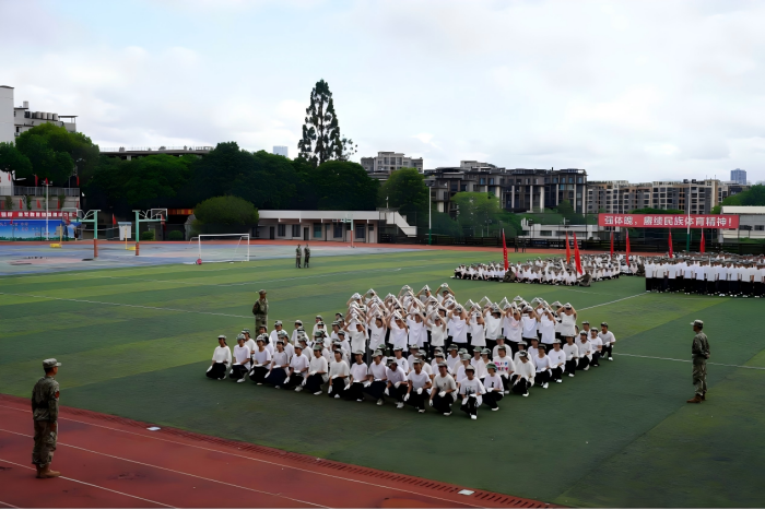 淬炼青春励志铸魂 少年启航笃行担当——我校举行2025年国防教育节闭幕式暨新生军训会操表演