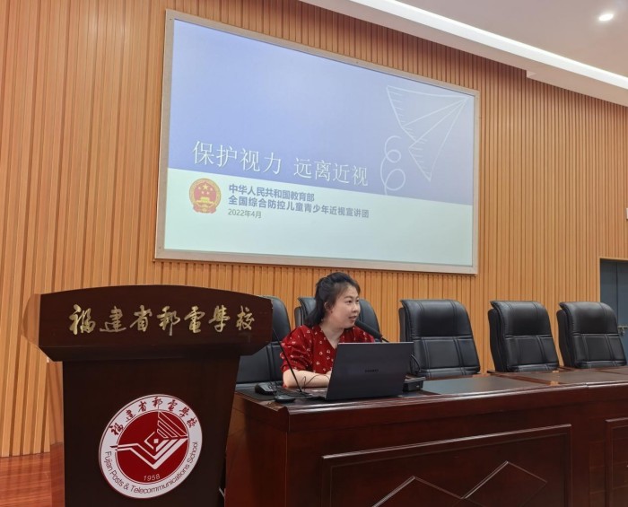 为加强青少年近视防控工作,呵护学生视力健康,落实《教育部办公厅关于做好春季学期儿童青少年近视防控宣传教育工作的通知》,2026年4月20日下午,我校特邀福建医科大学附属第一医院唐舒敏主治医师在学术报告厅举办了一场《保护视力,远离近视》的专题讲座。此次宣讲活动由福建省教育厅主办,福建省医科大学医学技术与工程学院、福建省儿童青少年近视防控研究中心承办,福建省邮电学校协办。