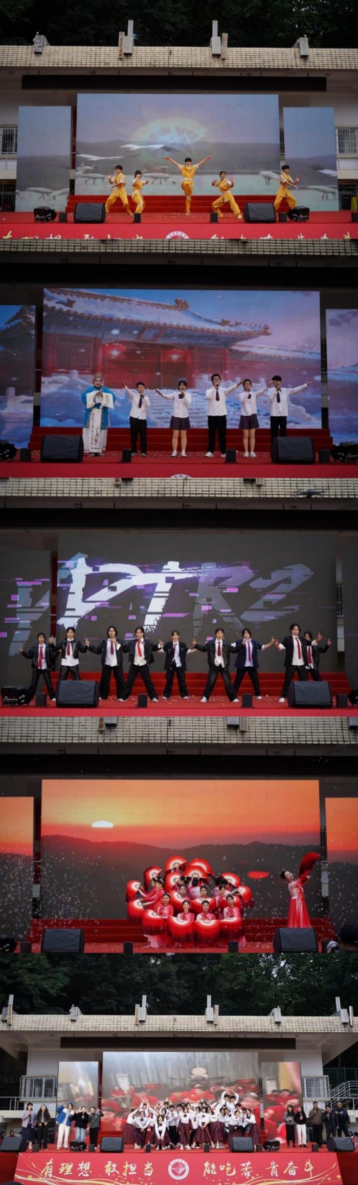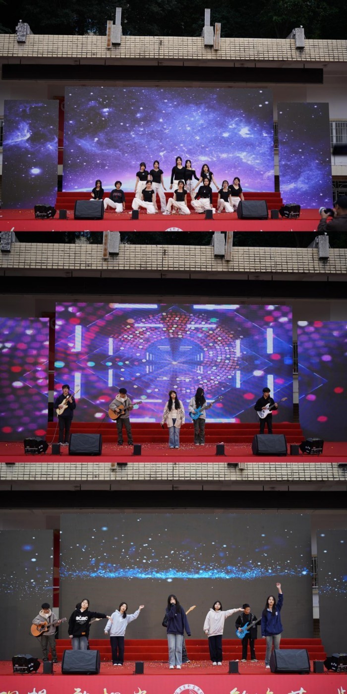 本次汇演还邀请到福建体育职业技术学院、福建海洋职业技术学校嘉宾带来特邀节目,《永春白鹤拳竞赛套路表演》尽显中华武术魅力,歌曲《光亮》传递温暖力量。师生群舞《启明星》诠释育人初心,红色舞蹈《万疆》礼赞伟大祖国,班助合唱《勇往直前》凝聚奋进力量,师生同台、家校同心的温馨场景令人动容。