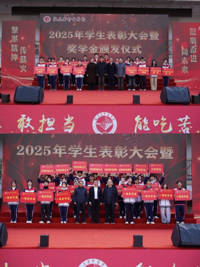 本次汇演以“旗帜引领,薪火相传”“共担使命,砥砺前行”“不忘初心、同绘新章”三个篇章徐徐展开,主题鲜明。活动开篇举行2025年学生表彰大会暨奖学金颁发仪式,校领导先后宣读上级及校内表彰文件,对“技能之星”“双创之星”“学习之星”等五类先进学生代表予以嘉奖,领导嘉宾为获奖学子颁奖并合影留念,以榜样力量激励全体师生奋勇争先。随后,校党委书记包晓晖发表新年贺词,回顾学校2025年在思想引领、人才培养、教学改革等方面的丰硕成果,寄语师生坚守初心、勇担使命,并宣布汇演正式启动。