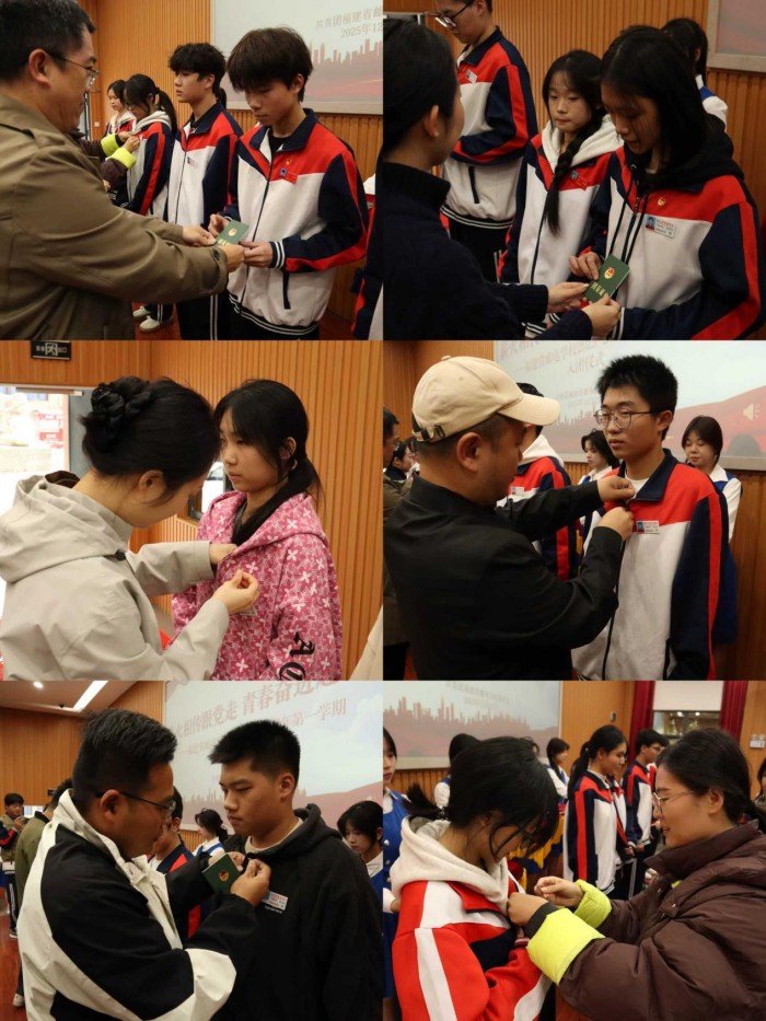 仪式在庄严的国歌声中拉开帷幕,翁竞宣读本学期新发展团员名单,与会领导老师为新团员佩戴团徽、颁发团员证。全体新团员面向团旗庄严宣誓,铿锵誓言彰显了新时代青年坚定不移跟党走的信念与决心。