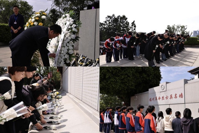 仪式现场庄严肃穆,全体人员整齐列队于烈士纪念碑前,向革命先烈致以崇高敬意。仪式在庄严的氛围中开始,带队领导上前整理挽联,全体人员向革命烈士行三鞠躬礼,深切缅怀英烈丰功伟绩。随后,大家绕碑瞻仰烈士纪念碑与福州革命烈士英名墙,依次敬献鲜花,表达对先烈的深切缅怀与哀思以及崇高敬意。