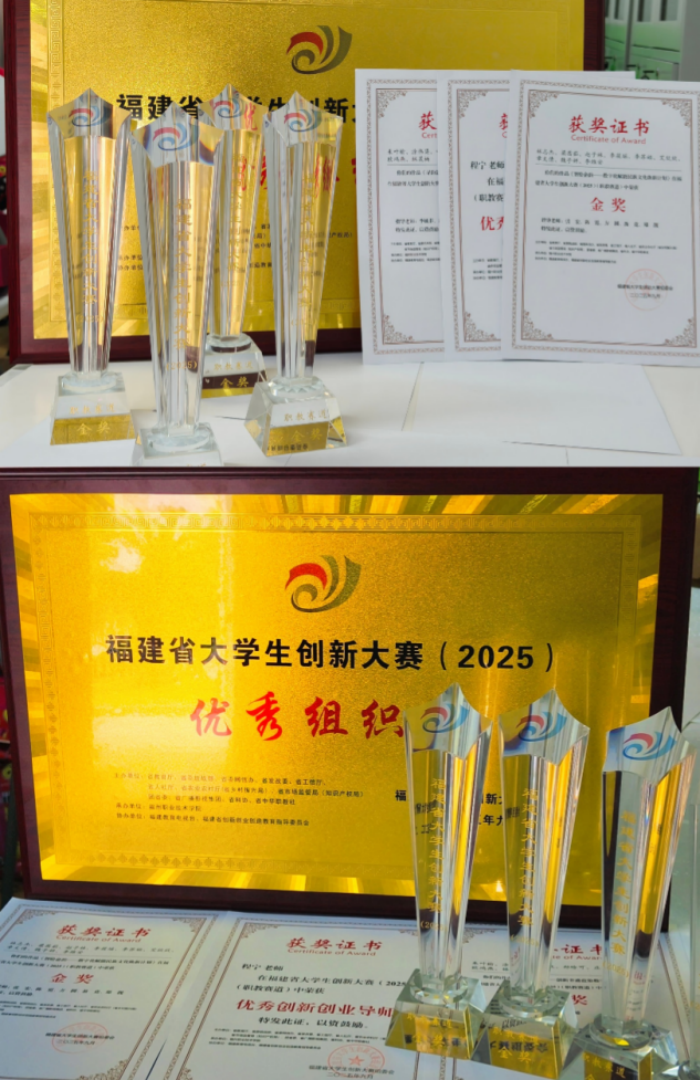 3月27日,2026年福建省创新创业教育工作推进会在福建农林大学隆重召开,我校在福建省大学生创新大赛(2025)职教赛道中取得历史性突破,一举摘得2项金奖、1项铜奖,并荣获“优秀组织奖”,创下我校在该项赛事中的历史最佳成绩。