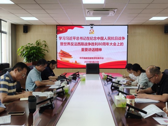 9月22日,福建省邮电学校召开党委会,组织“第一议题”学习贯彻习近平总书记在纪念中国人民抗日战争暨世界反法西斯战争胜利80周年大会上的重要讲话以及给全国特岗教师代表的回信精神等8项内容。校党委书记包晓晖主持会议并讲话。