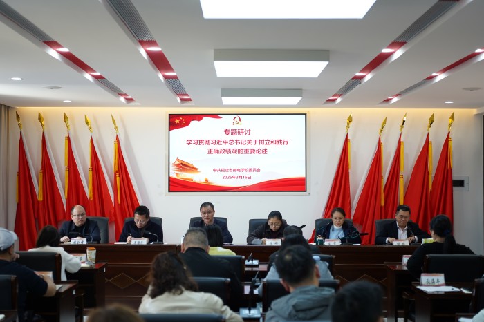 3月16日,福建省邮电学校在党建会议室举办树立和践行正确政绩观学习教育读书班暨党委理论学习中心组(扩大)学习会。校党委书记包晓晖主持会议,校领导、全体中层干部、青年理论学习小组代表参加会议。