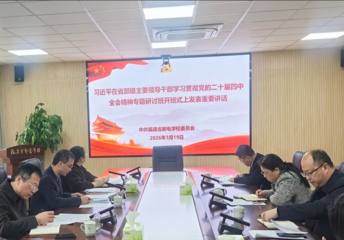 3月19日,福建省邮电学校召开党委会,组织“第一议题”学习习近平总书记在省部级主要领导干部学习贯彻党的二十届四中全会精神专题研讨班开班式、中共中央政治局第二十四次集体学习、中央城市工作会议上的重要讲话精神,以及习近平总书记重要文章《走好中国特色金融发展之路,建设金融强国》等内容。