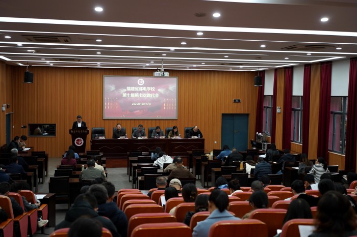 为深化分配机制改革,强化激励作用,推动学校高质量发展,12月17日下午,我校第十届第七次教职工代表大会在学术报告厅召开,专题研究审议《福建省邮电学校年度考核奖分配方案》。校党委书记包晓晖,党委副书记、校长苏嵘,党委副书记、纪委书记吴锦华,副校长陈霓、林则烽、林鹏出席大会,会议由林鹏主持。