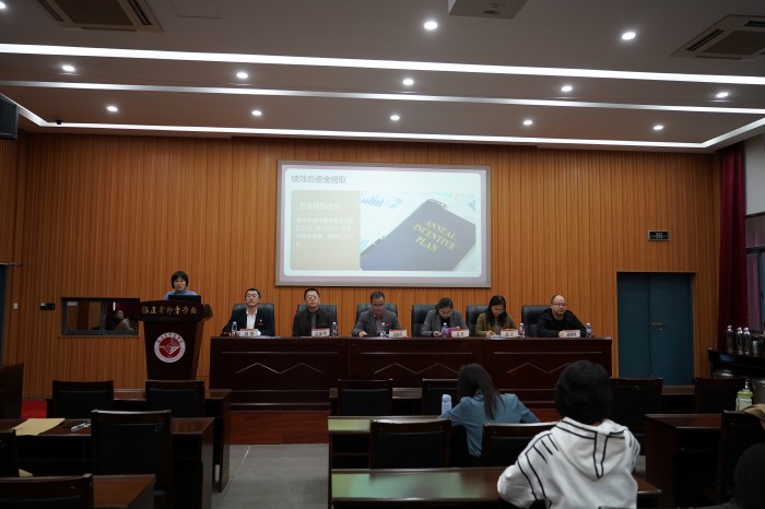 人事科负责人张丹玲汇报《福建省邮电学校年度考核奖分配方案》的相关内容。