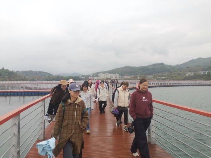 上午,教职工们前往此次活动的首站----古田县际面村桃园景区。作为福建省乡村振兴示范点,际面村依托千亩桃园,打造“桃文化”特色产业。大家沿着花间小径漫步,或驻足赏花拍照。下午,教职工们游览了省级风景名胜区古田翠屏湖。教职工们漫步环湖景观栈道,走进湖畔的溪山书院参观,在古田县古城沙盘和古农具前,感受古田县的历史变迁与文化传承。