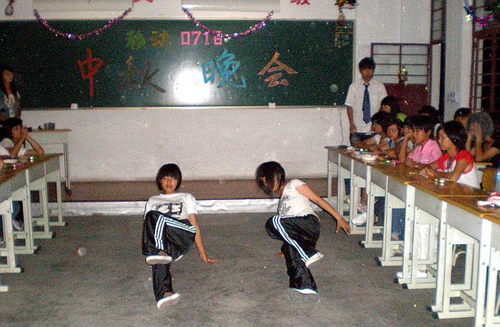 9月25日是传统佳节——中秋,在这举国共度团圆的节日里,移动通信0716班在本班教室举办了一场别开生面的晚会。18:50,伴随着二人街舞的青春节奏,晚会热烈拉开序幕。“趣味拉歌”的活动把同学们又带回到军训的那段“峥嵘岁月”。吴丽梅同学等自编自导的情景剧“瞧,我们这一家子!”使同学们摆脱了思乡的情绪,感觉到了班级这个大家庭的温暖。男生宿舍404和女生宿舍404举行了宿舍“PK”赛,女生404的“我猜,我猜,我猜猜猜”在启发了同学们智慧的同时,还为每位获胜者精心准备了奖品。男生404精心编排的小品“荆柯刺秦王”融历史于现代,寓知识于娱乐,余森等同学的精彩表演赢得了大家的阵阵掌声。本次晚会的编导们还为杨小枚、林娇艳、班主任等补过了生日,蜡烛燃起,生日歌响起,那份浓浓深情感染着在场的每一位同学,晚会进入了高潮。其他节目还有配乐朗诵、男女声独唱等。21:10晚会在“相亲相爱”的歌声中结束。学生科陈抒勇科长为本次晚会做了会前动员,苏嵘副科长应邀出席了本次晚会,并与本班同学同娱同乐。出席本次晚会的还有学生科张仁美老师,网络中心周天舒老师等。