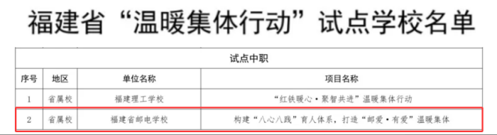 福建省邮电学校成功入选省“温暖集体行动”试点单位