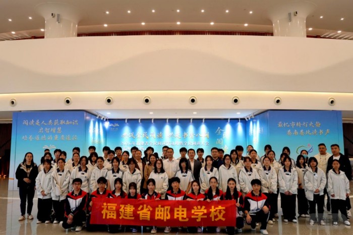 同时,我校作为福建省唯一受邀参加大会的中职学校,校读书社同学为大会献上《书香润校园 温暖伴成长》主题校园朗诵情景剧表演,以青春之声传递阅读力量。