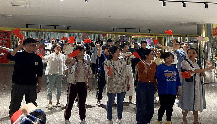 学习交流分享会后,活动进入团建项目环节。为深化社会主义核心价值观,大家以“文明”“富强”“和谐”等为队伍名称。在“破冰组队”“粮食(面粉)不浪费”“呼啦圈接龙”等项目中,各队齐心协力,逐一闯关完成了各竞赛项目,健康新颖的活动让来自不同岗位的青年教职工们迅速拉近了距离,同时也培养了青年教职工团结互助精神。在才艺展示环节中,张方毅、卓司麒老师与王景亨同学合作表演的吉他弹唱《成都+平凡之路》,苏宸老师献唱的《月半小夜曲》,更是将现场气氛推向高潮。最后,活动在全体大合唱《我爱你中国》中落下帷幕,激昂嘹亮的歌声寄托了师生们对祖国的真挚祝福和对未来的美好期许。