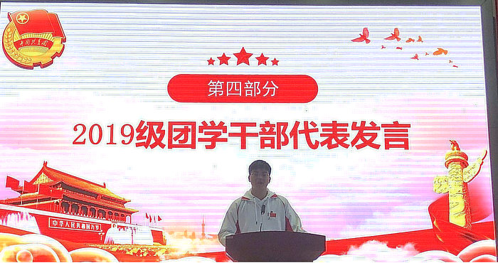 随后,校团委书记李沛然寄语新晋团学干部,他表示:团学干部是学生中的积极分子、先进模范和行为表率,一届又一届的团学干部在迎新军训、文体活动、志愿服务、文明督导等诸多方面发挥了积极作用,是服务学校发展建设的重要力量。全体新晋成员要以高度的责任感完成好学校部署的各项工作,以时不我待的使命感落实好“我为师生办实事”任务、以优异的成绩和优质的服务为我校“十四五”开局和建党百年献礼。