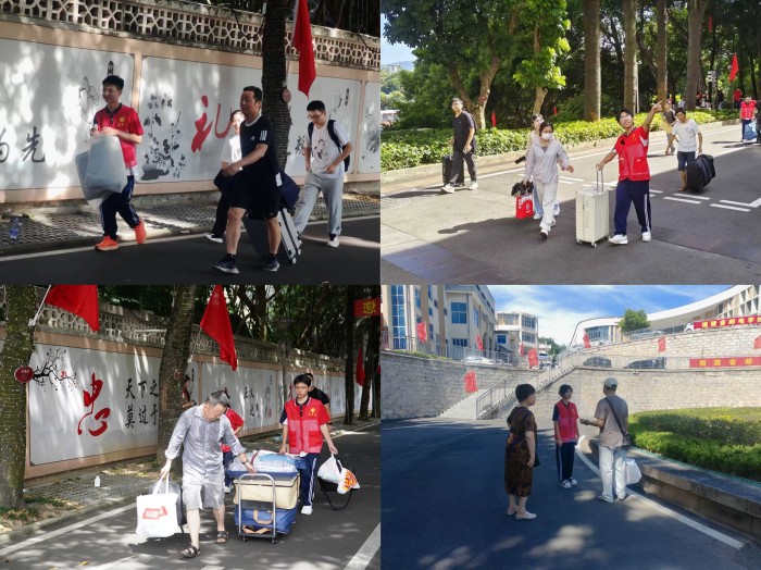 报到流程高效有序,校园布置温馨细致。往来穿梭的行李推车与从容服务的志愿者,尽显福邮人的温度与担当。从校门到宿舍,红旗招展,整个校园洋溢着蓬勃朝气。