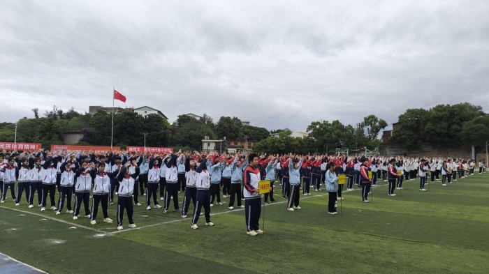 开幕式尾声,各班级同学带来精彩的广播操表演,动作规范整齐、节奏协调统一,完美融合韵律美与力量感,彰显了班级凝聚力和团队精神。