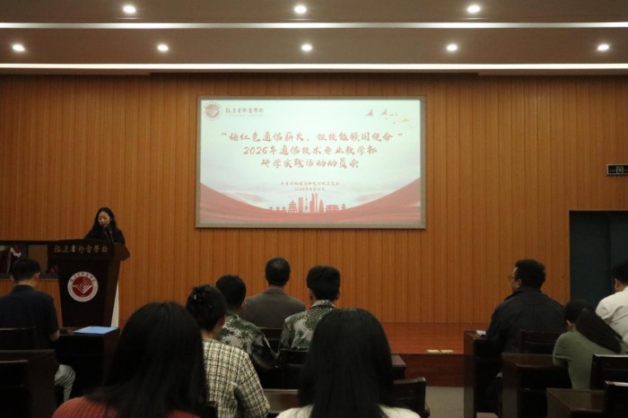 为深入贯彻落实福建省“红色八闽行”研学实践教育项目精神,2026年4月16日下午,“传红色通信薪火,担技能强国使命”研学实践活动行前动员大会在学术报告厅举行。校党委书记包晓晖、有关部门负责人以及全体带队教师、思政教师、2024级通信技术专业教学部300余名学生参会。