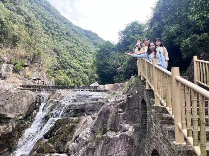 连江贝里蟹谷景区内,溪流潺潺,林木葱郁,怪石嶙峋,空气清新怡人。大家漫步于清幽山谷间,或驻足拍照,或临溪畅谈,享受难得的静谧与悠闲。
