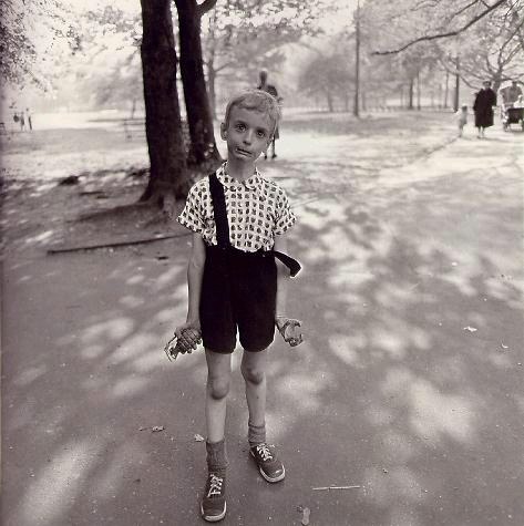 阿伯斯的风格是一种幻想世界和意识形态世界的不和谐。正如这幅照片中阳光明媚的公园和两棵梨树之间,以及优美的景致和小孩子明显的恐怖而带点残暴的表情。