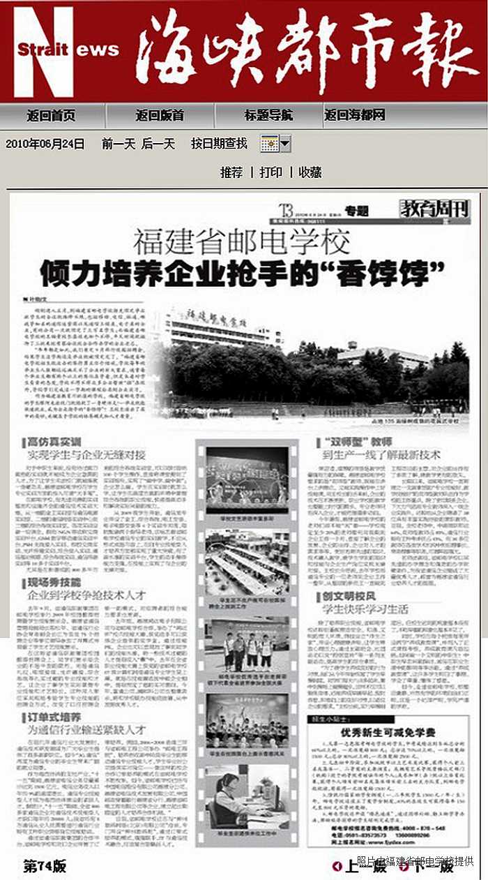 《海峡都市报》教育周刊整版报道邮电学校办学优势