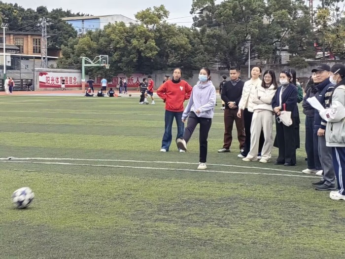 此次趣味运动会以“轻松参与、快乐竞技、团结奋进”为主题,设置了套圈、足球射小门、抛绣球等三个集体项目,兼顾趣味性与挑战性。比赛现场气氛热烈,精彩纷呈,操场上欢声笑语此起彼伏。“套圈” 比赛中,运动员们手持套圈,或凝神瞄准,或调整姿势,将套圈稳稳掷出;“足球射小门” 比赛中,运动员们依次登场,助跑、起跳、射门,一系列动作行云流水;“抛绣球”比赛中,抛球的运动员屏气凝神、瞄准投掷,接球的运动员眼疾手快、灵活走位,双方配合默契,彩色的绣球在空中划出一道道优美的弧线。