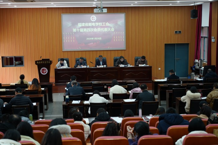 第十届第八次教代会在与会代表齐唱国歌中开幕。苏嵘校长以“攻坚破局求实效 凝心聚力谱新章”为主题作2025年学校工作报告。从党的建设、立德树人、办学治校、师生服务等四个方面回顾总结了学校在过去一年中所取得的显著成绩,并对2026年重点工作任务作出了部署,为推进高质量发展提供了有力指引。代表们讨论、审议并表决通过了《2025年学校工作报告》《2025年学校财务收支情况报告》《福建省邮电学校章程(修订草案)》。