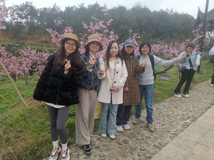 上午,教职工们前往此次活动的首站----古田县际面村桃园景区。作为福建省乡村振兴示范点,际面村依托千亩桃园,打造“桃文化”特色产业。大家沿着花间小径漫步,或驻足赏花拍照。下午,教职工们游览了省级风景名胜区古田翠屏湖。教职工们漫步环湖景观栈道,走进湖畔的溪山书院参观,在古田县古城沙盘和古农具前,感受古田县的历史变迁与文化传承。