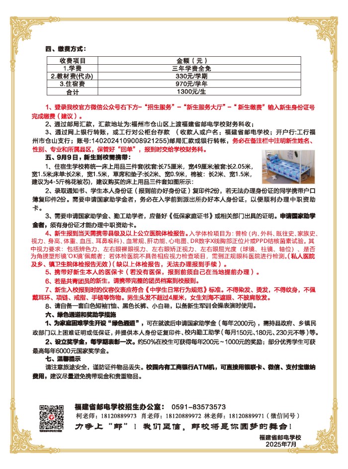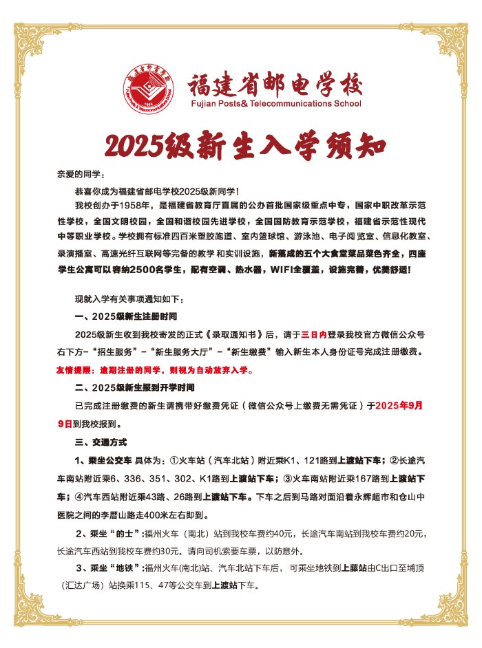 您现在的位置: 首页 > 学校信息 > 通知公告通知公告 福建省邮电学校2025年新生入学须知 发布时间:2025-07-15 //echo ;?> 来源:招生办公室点击: 上一篇:福建省邮电学校2025年漳州市招生代码 下一篇:福建省邮电学校关于防范虚假招生的严正声明