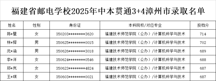 您现在的位置: 首页 > 学校信息 > 通知公告通知公告 福建省邮电学校2025年中本贯通3+4漳州市录取名单 发布时间:2025-07-17 //echo ;?> 来源:招生办公室点击: 招生热线:0591-83573573 学校地址:福州市仓山区上渡路李厝山60号 上一篇:福建省邮电学校2025年中本贯通3+4福州市录取名单 下一篇:福建省邮电学校2025年中本贯通3+4宁德市录取名单