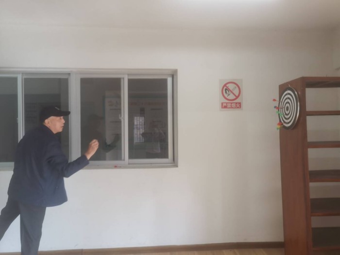 在趣味运动会比赛现场,老同志们精神矍铄、斗志昂扬。飞镖比赛,大家屏气凝神,精准投掷;套圈比赛,大家手持套圈,瞄准目标,果断出手;抛绣球比赛,大家轮番上阵,依次拿着绣球对着背篓投掷,在运动中感受快乐。