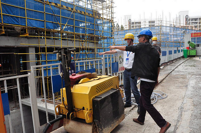 徐校长对施工工地安全提出三点要求:一是要毫不松懈地抓好施工工地疫情常态化防控工作,严格落实体温检测等防疫措施,确保工地人身心安全;二是要严格做好施工场地安全管理,抓好施工人员树立安全意识,增加完善安全提示牌,加强工地大门管理,强化安全生产施工,确保校园安全稳定;三是要紧盯施工时间节点,注重施工细节,确保工程质量,保障施工平稳有序进行。